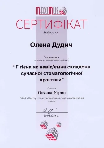 - 2019 - works at the Stomatological clinic “Stomatprofy”