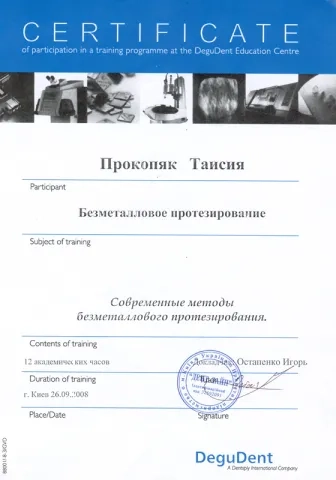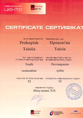 - 2004-2007 рр. - робота в приватному стоматологічному кабінеті.