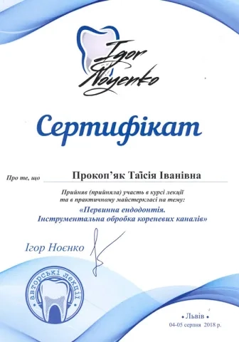 "Ендодонтія — це не лише про збереження зуба, а про збереження довіри. Я працюю так, щоб кожен пацієнт знав: навіть найскладніший випадок має рішення, якщо є знання, терпіння і турбота."